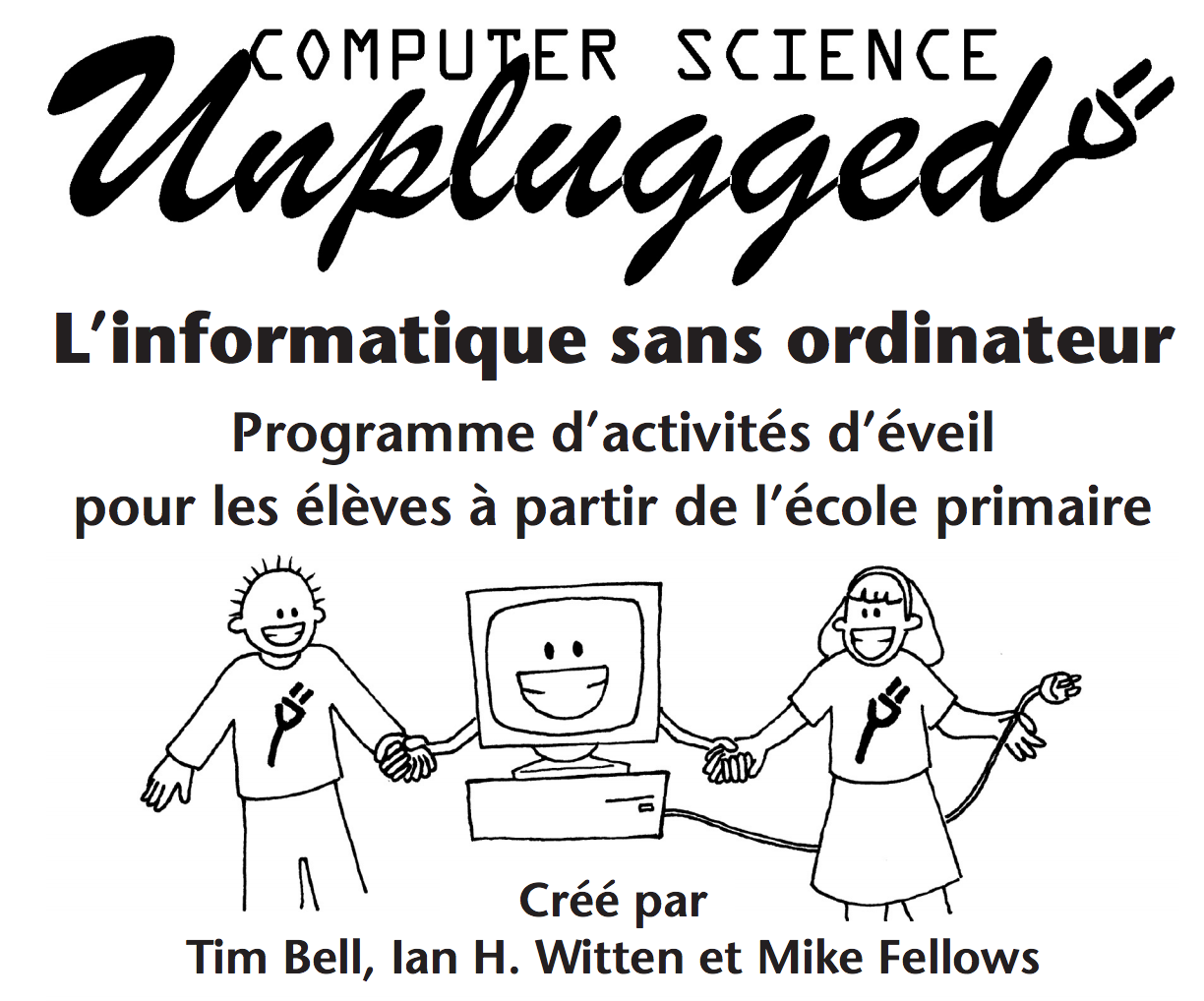 CS Unplugged in French. Les activités simples et amusantes de ce manuel, destinées aux enfants d’une certaine tranche d’âge, vous familiarisent avec les bases du fonctionnement d’un ordinateur – sans jamais avoir à utiliser un ordinateur!
